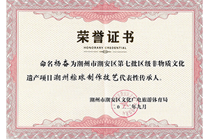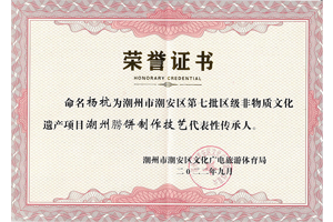 “揚(yáng)航”始終遵循“誠(chéng)信為本、質(zhì)量第一、顧客至上”的經(jīng)營(yíng)理念,先后榮獲“廣東老字號(hào)”、“廣東省著名商標(biāo)”、“廣東省重點(diǎn)商標(biāo)保護(hù)名錄”、“廣東省非物質(zhì)文化遺產(chǎn)保護(hù)單位”、 “國(guó)家高新技術(shù)企業(yè)”等榮譽(yù)稱號(hào)。并擔(dān)任潮州市商標(biāo)專利協(xié)會(huì)會(huì)長(zhǎng)單位、潮州市食品行業(yè)協(xié)會(huì)常務(wù)副會(huì)長(zhǎng)單位、廣東省老字號(hào)協(xié)會(huì)常務(wù)理事單位、潮州市老字號(hào)協(xié)會(huì)副會(huì)長(zhǎng)單位、潮州餐飲行業(yè)協(xié)會(huì)副會(huì)長(zhǎng)單位、潮州烹調(diào)協(xié)會(huì)副會(huì)長(zhǎng)單位等社會(huì)團(tuán)體的職位。