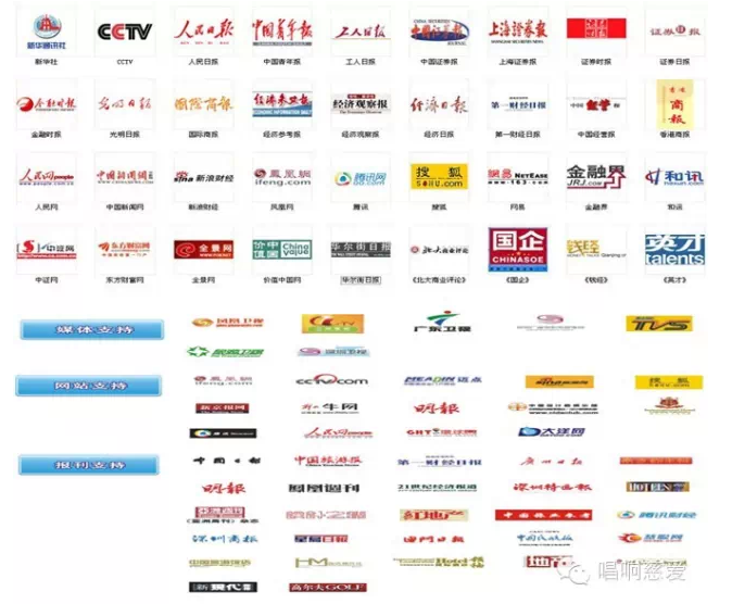 中央電視臺、中國黃河電視臺、鳳凰衛(wèi)視、深圳衛(wèi)視、廣東電視臺、人民日報、南方日報、新周刊、瞭望中國、大眾慈善、新浪、網(wǎng)易、騰訊、中關(guān)村、千龍網(wǎng)……