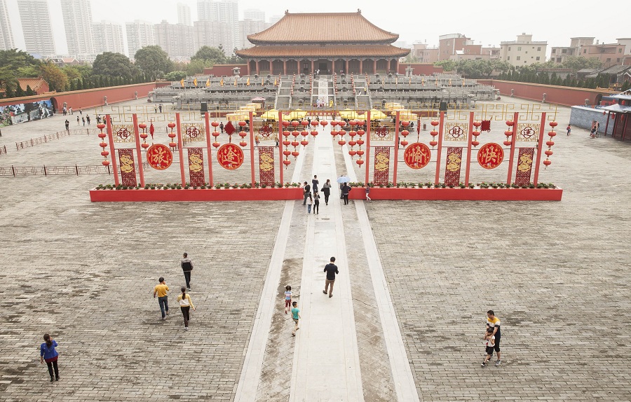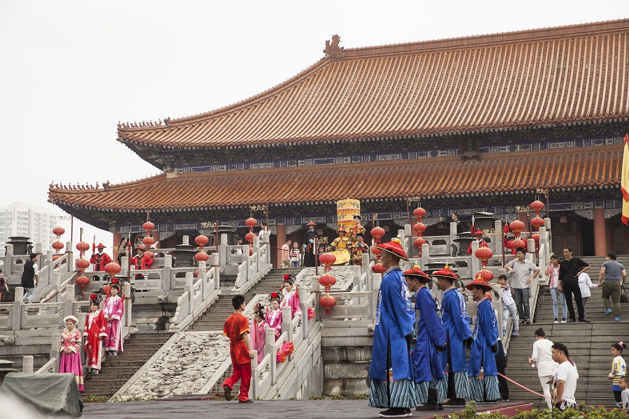 與暢快激情的方特夢幻王國相比,第二天的活動路線則更為悠閑愜意,一掃昨日盡興后的疲憊。同安影視城是前遠華集團投資興建的仿古人造景觀娛樂城,主要選取北京故宮的典型建筑即天安門、太和殿、養(yǎng)心殿、頤和園長廊、明清一條街作為基本建筑群體。北京故宮的雄偉壯麗,在這座娛人造景觀樂城體現(xiàn)得淋漓盡致,揚航旅游隊員們無不被這洋溢著中華文化底蘊的一景一物所深深吸引,紛紛拿起手機拍照留影。