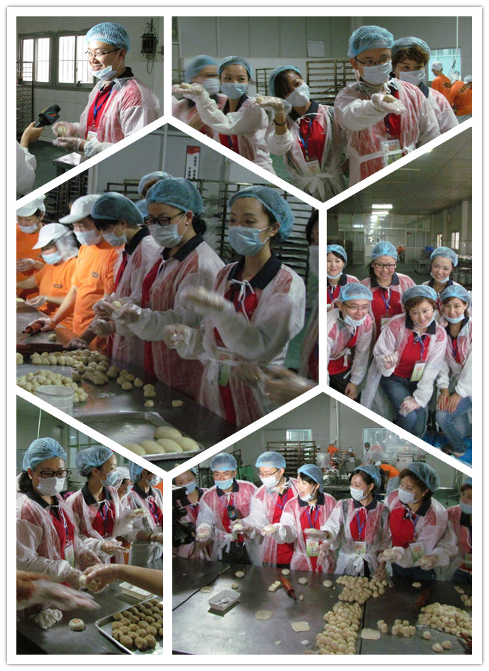 一大早揚(yáng)航食品公司便迎來了一批熱情洋溢的客人——潮州電視臺(tái)民生志愿者,他們由多位知名的電視臺(tái)主持人組成。今天他們來到揚(yáng)航食品的生產(chǎn)車間親手制作月餅,以最實(shí)際的行動(dòng)展現(xiàn)出對(duì)此次慈善活動(dòng)的誠意。按照廠規(guī)“全副武裝”完畢的志愿者們在揚(yáng)航月餅師傅耐心指導(dǎo)下興致勃勃地制作起雙烹月餅。你看,那個(gè)專注的模樣,絲毫不比我們的一線工人遜色呢。經(jīng)過一番辛苦的制作,香氣四溢的雙烹月餅終于可以出爐包裝了。