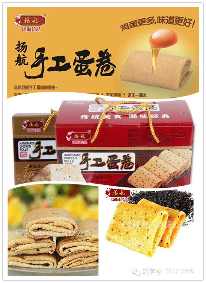 說(shuō)起揚(yáng)航手工蛋卷,人人贊不絕口。近年揚(yáng)航食品斥巨資興建的蛋卷車(chē)間集食品研發(fā)、安全生產(chǎn)及品質(zhì)檢測(cè)于一體,項(xiàng)目配套齊全。于此同時(shí)聘請(qǐng)了有制作蛋卷多年豐富經(jīng)驗(yàn)的專(zhuān)業(yè)師傅,培訓(xùn)了一批手工制作蛋卷的工人,她們專(zhuān)業(yè)能力高、操作技巧熟,全力打造屬于揚(yáng)航特色蛋卷的新概念——雞蛋多!不加一滴水!不加添加劑!不加香精、色素!揚(yáng)航手工蛋卷都是車(chē)間工人一小卷一小卷制作的,絕對(duì)是揚(yáng)航食品最富有誠(chéng)意的產(chǎn)品之一!