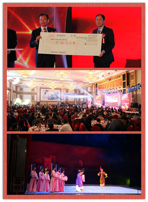 在此次第四屆會(huì)員大會(huì)上分別選舉了韓江文化研究會(huì)的會(huì)長、執(zhí)行會(huì)長、常務(wù)副會(huì)長、副會(huì)長、秘書長,常務(wù)理事,監(jiān)事等職務(wù)人員,并進(jìn)行頒發(fā)任職證書儀式。由韓江文化研究會(huì)常務(wù)理事會(huì)成員發(fā)起的深圳市潮州商會(huì)投資有限公司也宣布正式啟動(dòng),成為其研究會(huì)成立發(fā)展新的里程碑。 同時(shí)現(xiàn)場(chǎng)為11名學(xué)習(xí)成績優(yōu)秀的學(xué)子發(fā)放2014年度獎(jiǎng)學(xué)金。并與深圳大學(xué)簽約設(shè)立慈文獎(jiǎng)學(xué)金,以資助深大潮籍品學(xué)兼優(yōu)、經(jīng)濟(jì)上有困難學(xué)生。在本次大會(huì)上,韓江文化研究會(huì)捐資三十萬獎(jiǎng)學(xué)金支票給深圳大學(xué)。