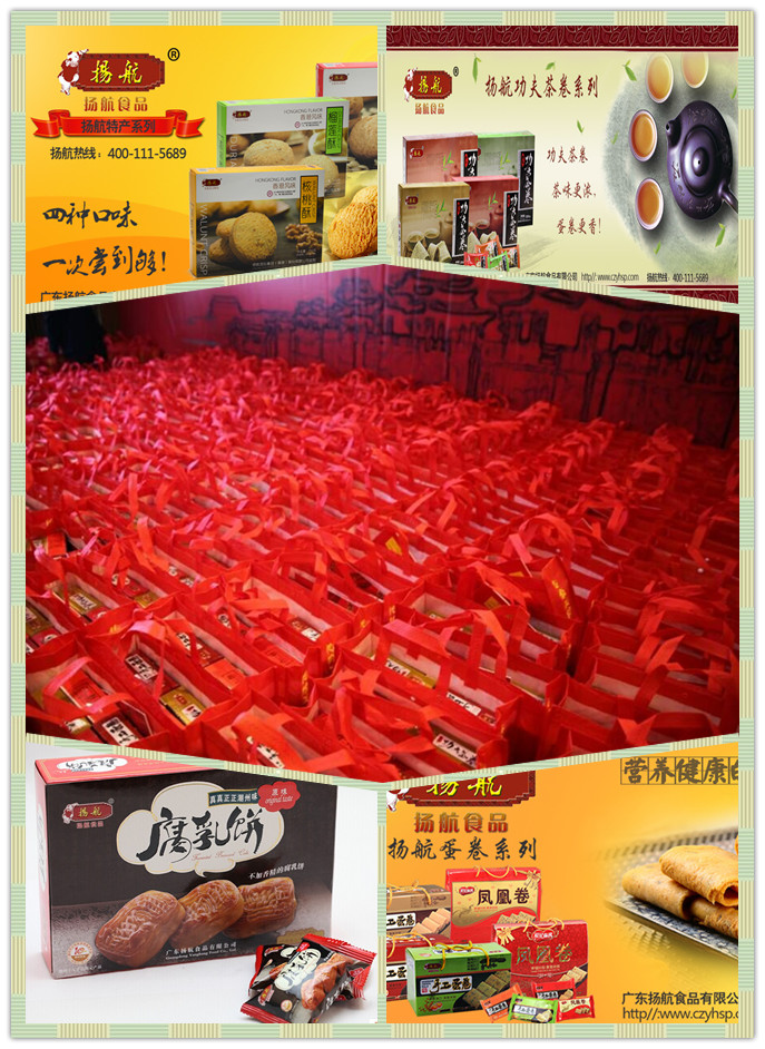 同時(shí)廣東揚(yáng)航食品有限公司為本次大會(huì)所有到場(chǎng)嘉賓提供精美的揚(yáng)航禮品:有最能體現(xiàn)潮州美食特色的揚(yáng)航經(jīng)典產(chǎn)品——醇正濃郁的專屬潮州特色口味的揚(yáng)航腐乳餅禮盒;有揚(yáng)航食品年度最有誠意的產(chǎn)品——雞蛋多、不加一滴水、不加添加劑、不加香精、色素的揚(yáng)航手工蛋卷禮盒!還有充滿濃濃潮州功夫茶香的揚(yáng)航功夫茶卷禮盒!以及富有完美口感的揚(yáng)航新品——揚(yáng)航香港風(fēng)味酥餅杏仁酥禮盒!彌漫濃濃潮州鄉(xiāng)情與富有潮州特色風(fēng)情的“揚(yáng)航禮盒”讓到場(chǎng)的嘉賓們倍感溫暖與親切!將源遠(yuǎn)厚重的潮州文化,融入到美味的揚(yáng)航食品中,是揚(yáng)航人不懈的目標(biāo);弘揚(yáng)潮州美食文化,讓世界更了解潮州,是揚(yáng)航人與生俱來的夢(mèng)想與追求。