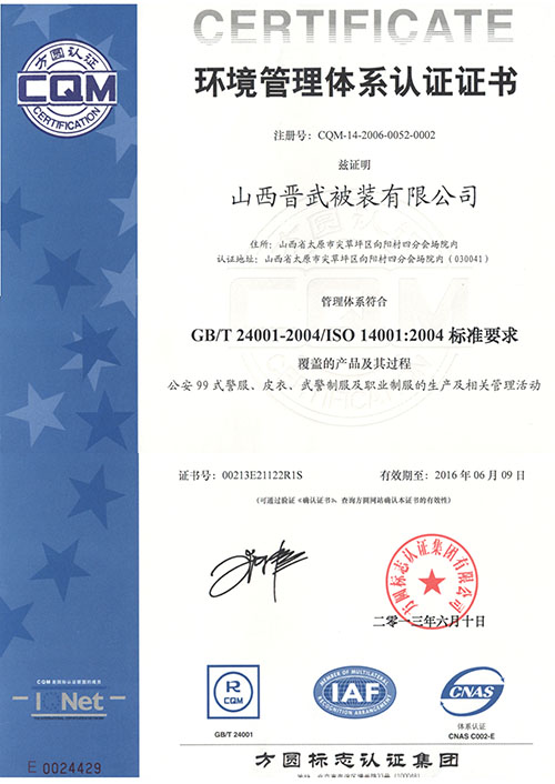 環(huán)境管理體系認(rèn)證證書(shū)